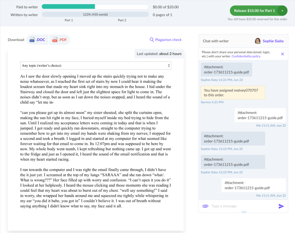 You can chat with the writer throughout the process of your order. In turn, the writer can customize the order based on your communication with him or her.